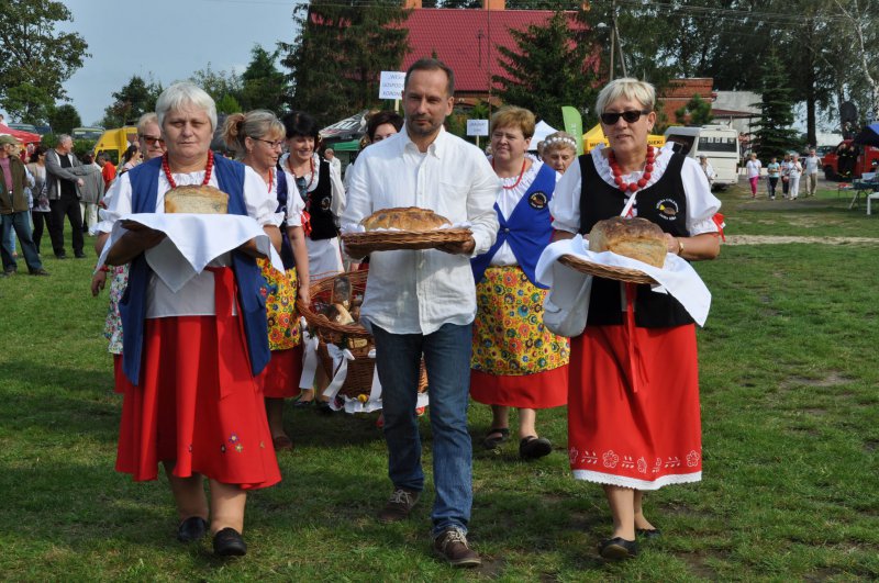 Festiwal pełen różnych smaków IX Festiwal Chleba przeszedł już do historii. Za rok będzie miał miejsce mały jubileusz. Po raz X w Janiej Górze spotkają się pasjonaci dobrych, niespotykanych gdzie indziej smaków. Tegoroczna edycja, jak każda z tych minionych obfitowała w szereg różnych atrakcji, nowości. I co najważniejsze w tym roku panowała wspaniała, słoneczna pogoda. Ta na nasze zamówienie- żartowali organizatorzy. Uroczystość rozpoczęła się od przemarszu korowodu z chlebami. Poprowadzili go: Danuta Megger koordynator Wioski Chlebowej, Lidia Nitka sołtys wsi oraz prezes Towarzystwa Rozwoju Gminy Świekatowo Jakub Gackowski. Chleby trafiły do rąk wójta Marka Topolińskiego oraz prezesa LGD Zdzisława Plewy, a pokrojone do uczestników imprezy. Po okolicznościowych przemówieniach przyszedł czas, aby wysłuchać koncertu 4 chórów w ramach konkursu „Swojskie nuty”. Na scenie wystąpiły: „Malwy” Silno, „Kasztelanki” Raciąż, „Cecylia” Bukowiec i „Wesołe gospodynie” Koronowo. Występy oceniało jury: Agnieszka Sowa, Anita Tucholska oraz Stanisław Komuda. Pod uwagę brano muzykalność, dykcje, wyczucie stylu, rytmikę, sposób przekazania tekstu i emocji, wizerunek sceniczny i ogólne wrażenie artystyczne. Zwyciężył chór z Bukowca przed Raciążem, Koronowem i Silnem. Nagrody ufundowało Towarzystwo Rozwoju Gminy Świekatowo. W trakcie festiwalu komisja w składzie: Joanna i Dariusz Fryckowscy oraz Agnieszka Naborczyk w ramach Powiatowego Konkursu „Na najsmaczniejsze domowe pieczywo na zakwasie lub na drożdżach” oceniało wypieki, które dotarły do Wioski Chlebowej. W kategorii „chleb” dostarczono 22 wypieki natomiast w kat. „super pieczywo” 9. Oto zwycięzcy za najlepszy chleb: Monika Schmelter ze Świekatowa, Kamila Łukaszewicz z Szewna i Marzena Ochendal z Lubiewa. Za ciasto I miejsce przypadło Katarzynie Glazik z Trutnowa, II Ewie Lewandowskiej z Janiej Góry a III Alicji Wolańczyk z Klonowa. Nagrody w konkursie zostały sponsorowane przez Powiat Świecki. Na festiwalu nie mogło oczywiście zabraknąć swojskich smaków dobrego, lokalnego jadła ! Były różne zupy, wypieki, konfitury, ziemniaki na kilka sposobów, podpłomyki, kiełbaski, bigos i wiele , wiele innych wspaniałości. A, że nie samym chlebem człowiek żyje można było pooglądać i dokonać zakupu wielu wspaniałych dzieł rękodzielnictwa. Poza tym były miody, tak ważne teraz w okresie zbliżającej się dużymi krokami jesieni, różnego rodzaju wędliny z Gminnej Spółdzielni „Samopomoc Chłopska” czy Manufaktury wędliniarskiej- olchowy dymek W. Śledzia. Duża kolejka ustawiała się do stoiska, gdzie można było kupić ciepły, pachnący, ledwo wyłożony z pieca chleb. Dużo atrakcji przygotowano dla dzieci. Były dmuchane zamki, można było pojeździć na kucyku, poszukać skarbów, dzięki Bydgoskiego Stowarzyszenia Miłośników Historii „Łuczniczka”. Tutaj nie tylko dzieci dobrze się bawiły, również ich rodzice a przede wszystkim ojcowie. Najmłodsi mogli pomalować sobie twarz, uczestniczyć w różnych konkursach z nagrodami itp. Tutaj niespodzianki przygotowała Teresa Łepek wraz ze studentkami z UKW w Bydgoszczy. Przed liczną publicznością zaprezentowały się również miejscowe mażoretki pod kierunkiem Urszuli Cybulskiej. Ich występ został ciepło przyjęty przez widzów. Festiwal zabezpieczali pod względem bezpieczeństwa druhowie z jednostki OSP w Lubana  Lipinach, a całość poprowadzili pracownicy Radia Uniwersytet z Bydgoszczy. KP
