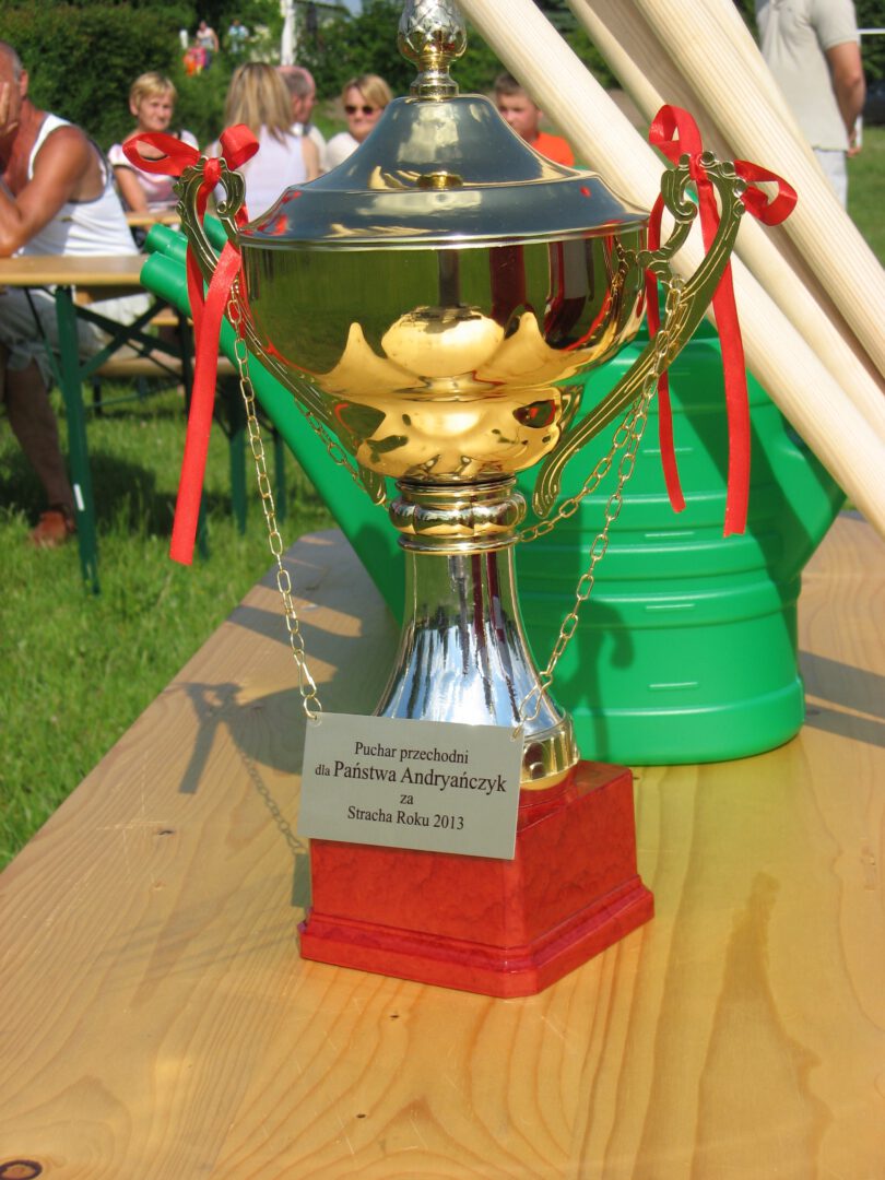 Na „Rodzinnym Pikniku” został rozstrzygnięty konkurs na „Stracha Roku 2013”. Do konkursu zgłoszono 21 straszków. Wszystkie okazały się bardzo pomysłowe i Jurry miało dużo pracy,aby wyłonić zwycięzcę. I miejsce otrzymał strach  Państwa Andryańczyk, II miejsce strach Państwa Morzywałek, III  miejsce Strach Państwa Nitków. Wszyscy twórcy otrzymali nagrody, które ufundował Wójt Gminy Świekatowo. Puchar przechodni ufundowało Towarzystwo Rozwoju Gminy Świekatowo. Na pikniku całe rodziny miło spędziły czas podczas zabaw ruchowych na boisku.  puchar1 nagrodzeni I nagroda Grześ Tatuś z dzieckiem podpłomyki na trawie Marysia tereska strachy Lidzia i ja kielbaski tereska